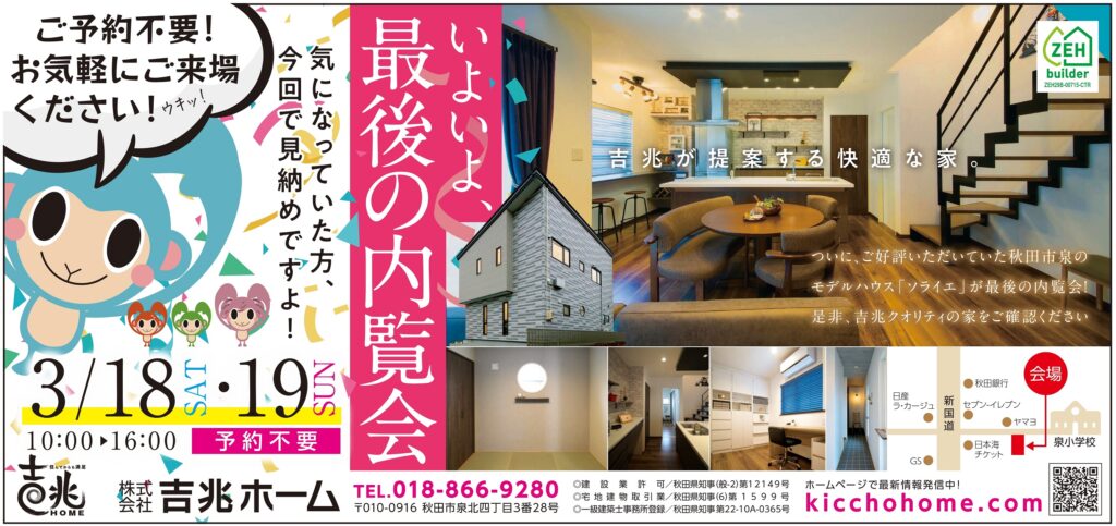 内覧会で是非、吉兆クオリティの家をご確認ください。