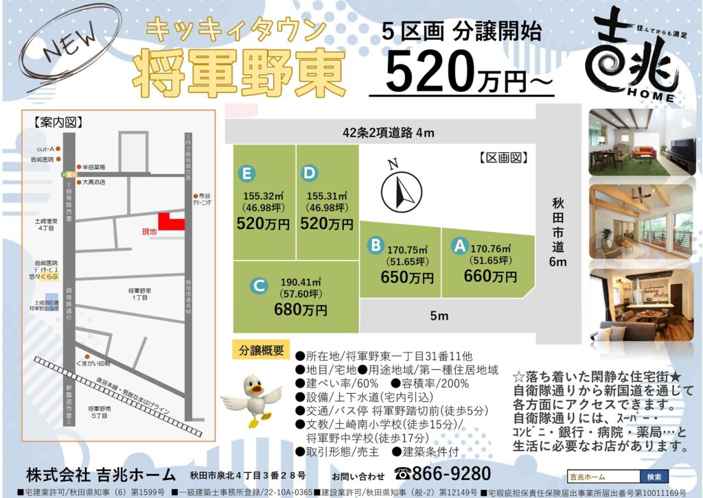 「将軍野東一丁目」に5区画分譲開始いたします♪